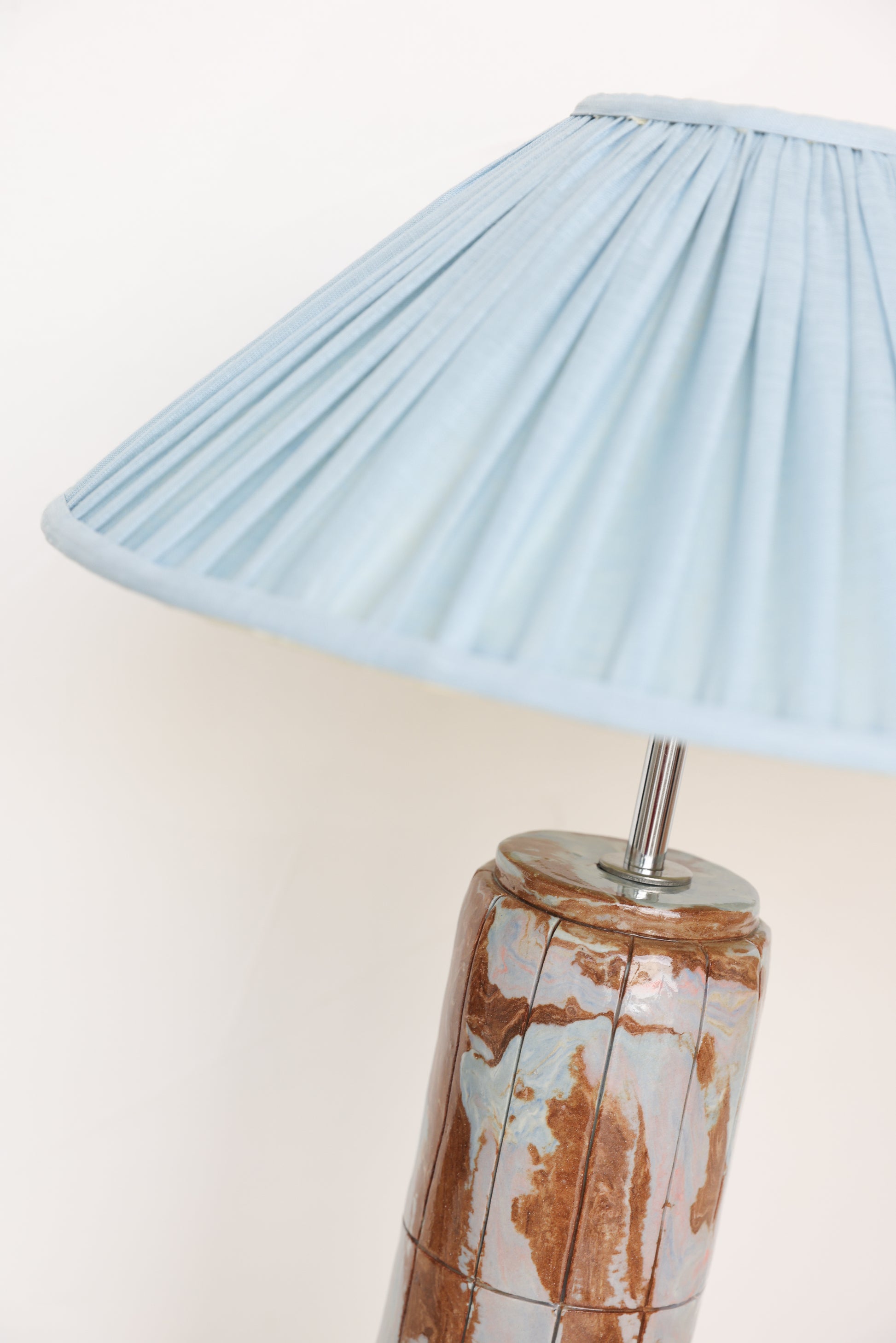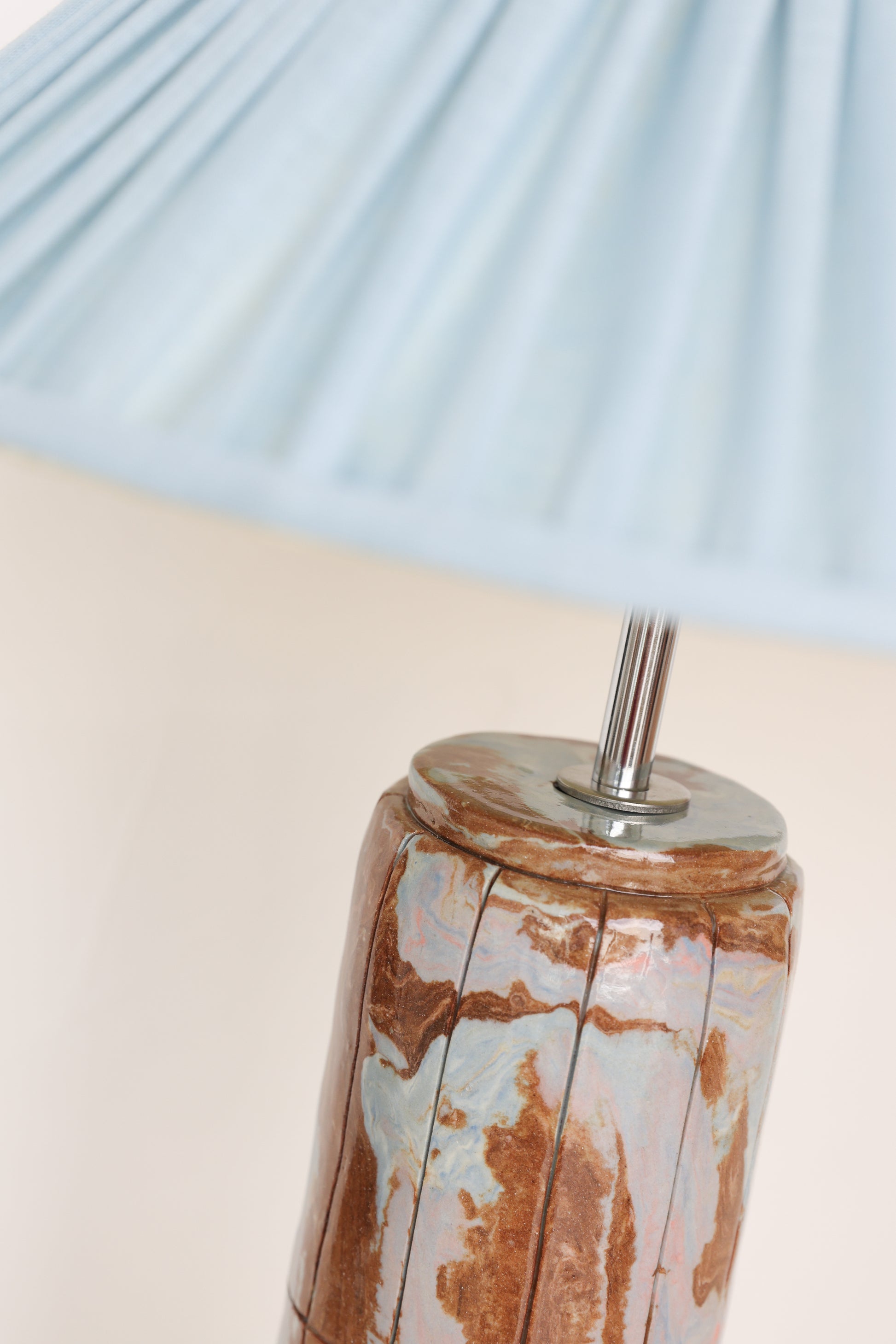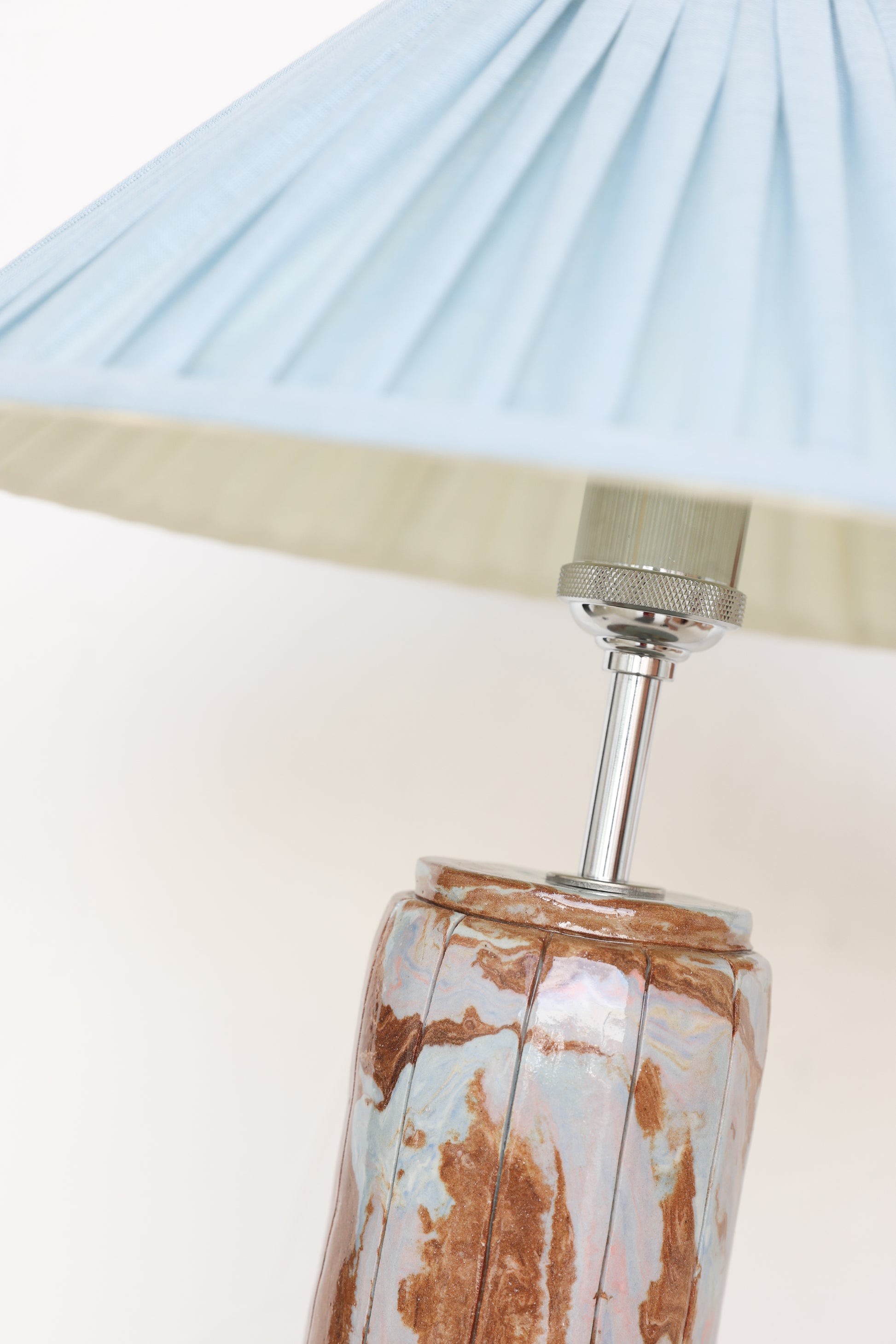 Azura, inspired by the world 'azure', which refers to the bright blue colour of a calm sea. She embodies the delicate dance between water and earth. Her base, a tapestry of rich browns and serene blues, flows like the shoreline, where tides kiss the soil, creating a harmony of movement and stillness. Mira is a celebration of nature’s balance—a tranquil presence that brings the calm of coastal landscapes into your space.