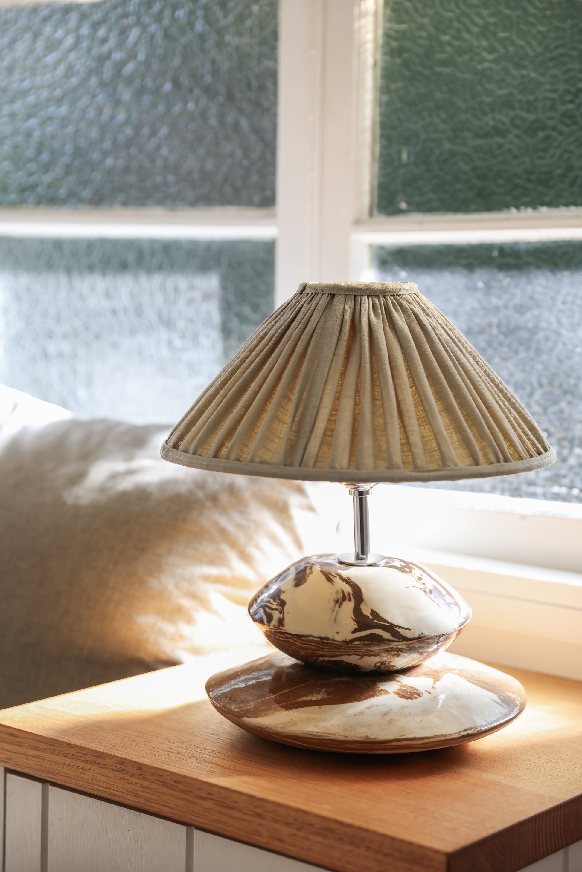 Inspired by the kind of woman who exudes effortless style and deep stillness, this lamp brings a grounded elegance into any space. Her palette is rooted in earthy tones, with soft sage, linen shade leading the way—subtle, soothing, and timeless.