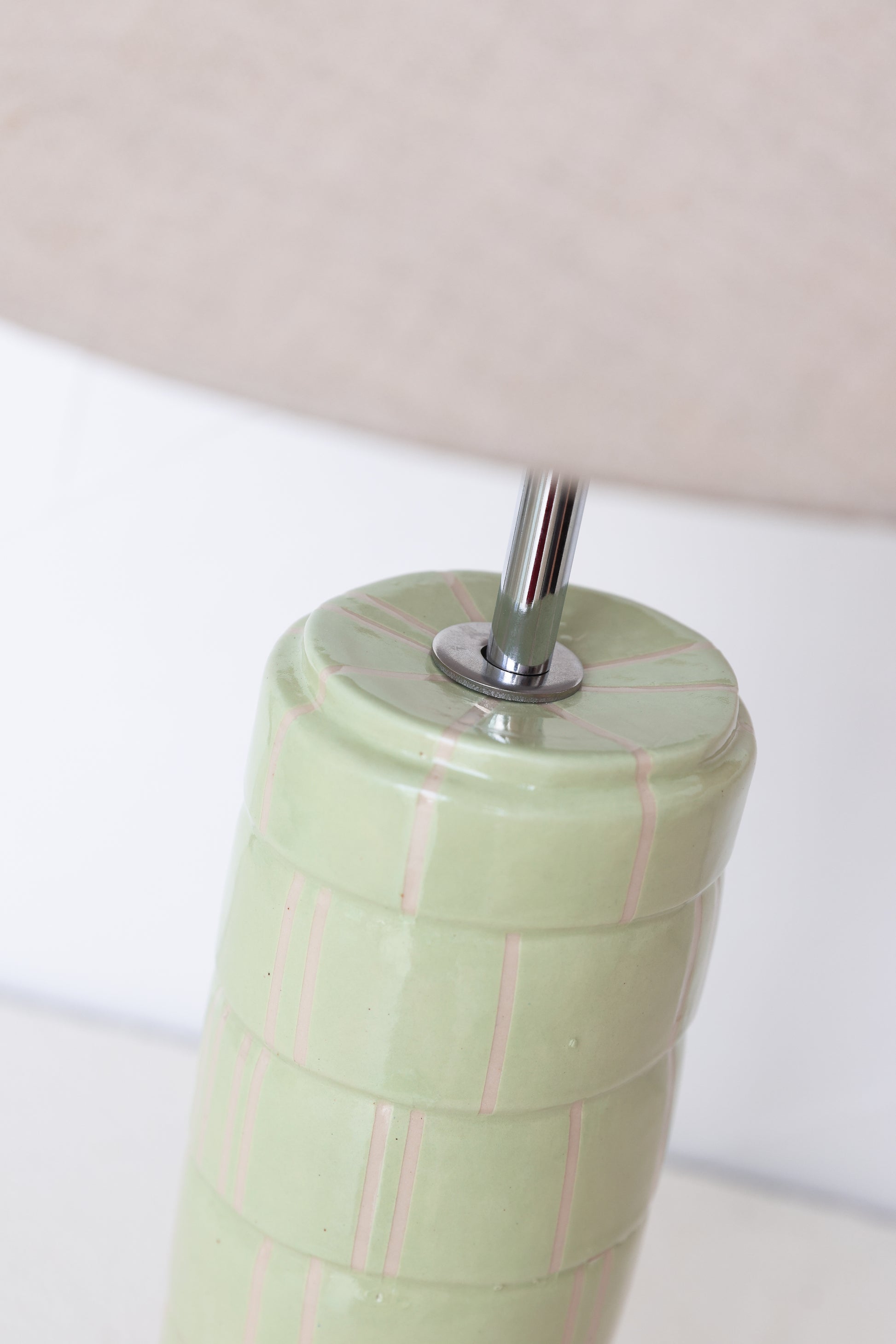 Calm and subtle at first glance, Lulu holds a quiet charm that grows on you. Her soft sage green glow soothes the room, inviting peace and comfort. But look a little closer, and you’ll notice the beautiful retro lines etched under her eye—playful details that nod to a vintage past with style and grace.